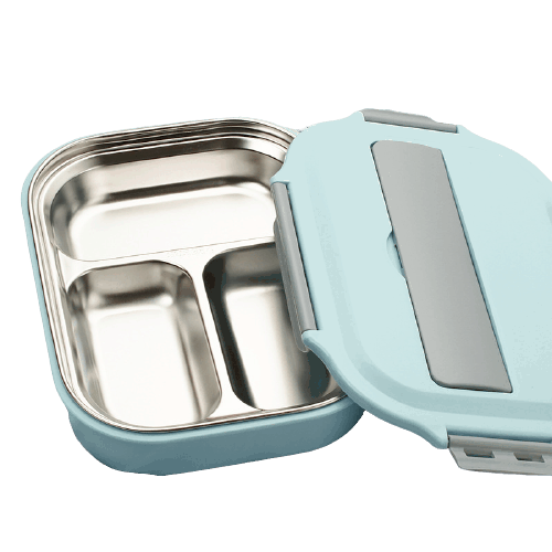 Lunch Box Inox Bleue Double-compartiment avec Couvercle transparent