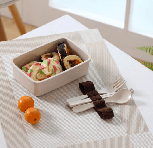 Lunch Box Bento Bambou Beige avec couverts