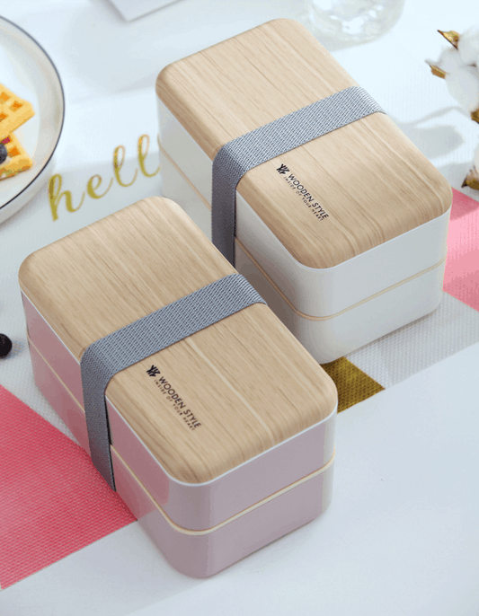 Bento Compartimentée Multi-étage Style Bois