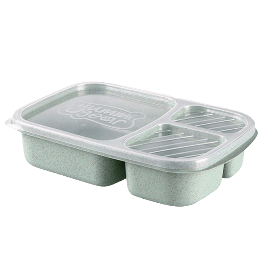 Lunch Box en Fibre de blé Verte Triple-compartiment Compatible Micro-ondes