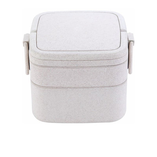 Lunch Box en Fibre de blé Double-étage avec Poignée Beige Blanche