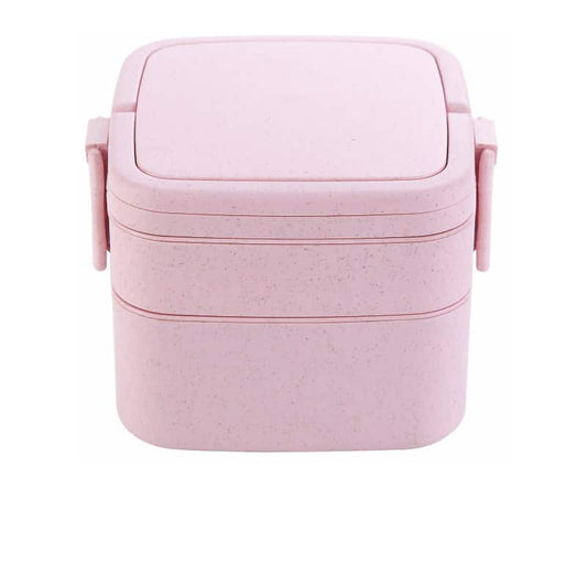 Lunch Box en Fibre de blé Double-étage avec Poignée Rose
