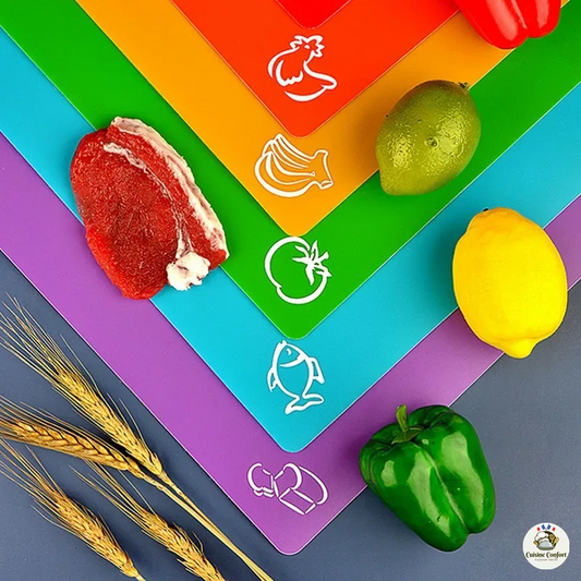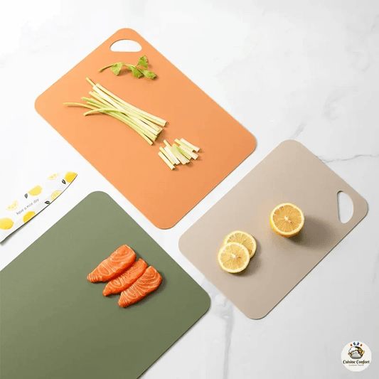Disponibilité en plusieurs couleurs : Cela permet de dédier chaque planche à un type d'aliment spécifique (viande, légumes, poisson), réduisant ainsi les risques de contamination croisée.