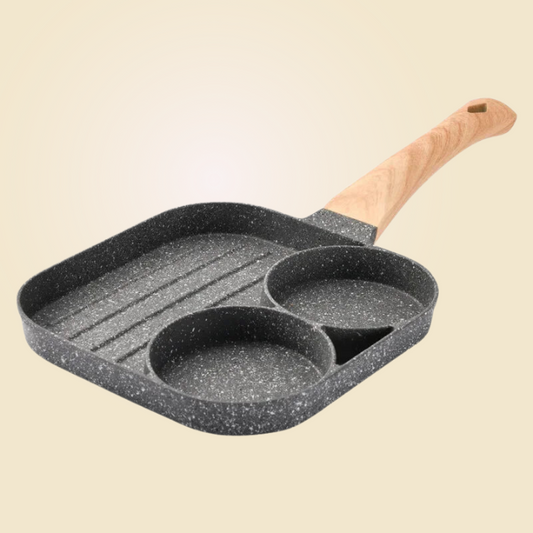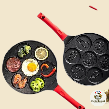Une poêle à compartiments est un ustensile ingénieux conçu pour permettre la cuisson simultanée de plusieurs aliments dans une seule poêle.Ce type de poêle est divisé en plusieurs sections, ou trous, chacune destinée à cuire un aliment spécifique, comme des œufs, des pancakes, ou même des légumes. Elle est idéale pour ceux qui souhaitent gagner du temps en cuisine tout en préparant des assiettes variés et savoureuses. Ces poêles sont également compatibles avec une grande variété de cuisinières, y compris celles électriques et à induction.