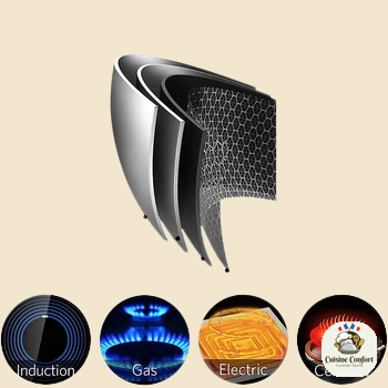 L'inox 18/10 est particulièrement recommandé pour les poêles en raison de sa haute résistance à la rouille et sa durabilité. Composé de 18 % de chrome et 10 % de nickel, cet alliage garantit une excellente tenue dans le temps et une utilisation sécurisée, même à haute température.