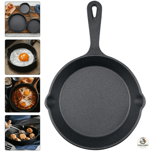 Poêle à Frire en Fonte Antiadhésif, Polyvalente Omelette