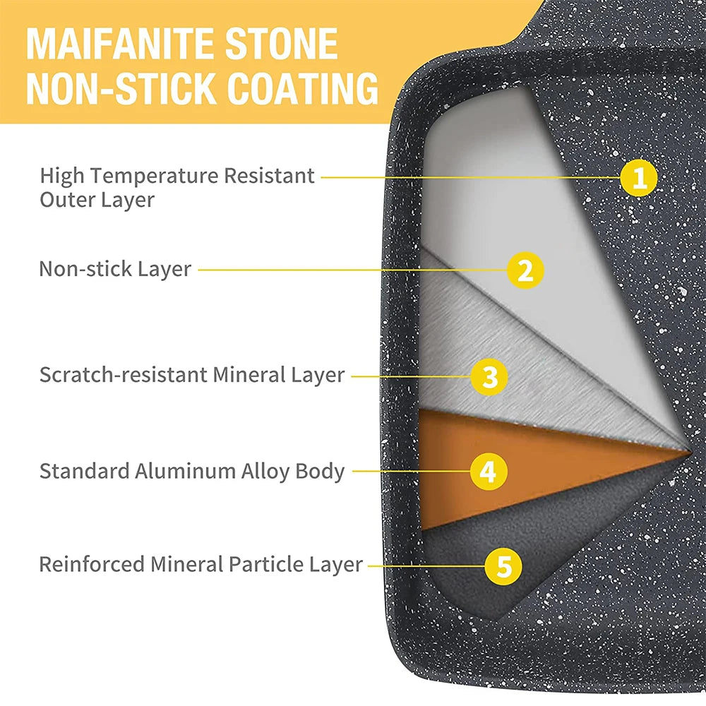 Grâce à son revêtement en pierre Maifanite, cette poêle garantit une cuisson uniforme sans que vos aliments n'adhèrent à la surface. Sans PFOA, elle assure une préparation saine tout en facilitant le nettoyage après utilisation. Pour prolonger la durée de vie de votre poêle, découvrez nos accessoires de nettoyage adaptés.